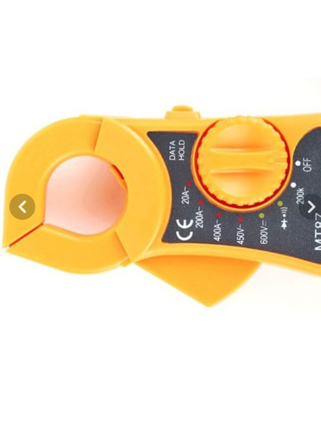 جریان: جریان قابل اندازه گیری از نوع متناوب (AC) در بازه جریانی از 20، 200 و 400 آمپر ولتاژ: ولتاژ قابل اندازه گیری از دو نوع AC و DC در بازه ولتاژی 450 ولت متناوب و 600 ولت مستقیم تست بازر: تست بازر (بیزر) یا تست اتصال کوتاه از جمله تست های مهم در مدارات الکتریکی است که نشان دهنده ی سالم بودن و برقرار بودن اتصالات بین مدارات می باشد. اتصال کوتاه مسیری است که جریان از داخل آن عبور می کند. با قرار دادن کلید سلکتوری در حالت بازر، در صورتی که کابل دارای اتصال کوتاه باشد، صدای بوقی از دستگاه خارج می شود. تست دیود: با قرار دادن کلید سلکتوری بر روی نماد دیود، امکان تست دیود فراهم می شود که با قرار دادن سیم های پراب بر روی دیود، میزان حاصل از اندازه گیری دیود در کنار نماد دیود بر روی صفحه نمایشگر دیجیتال قابل مشاهده است. مقاومت: مقدار مقاومت قابل اندازه گیری تا 200 کیلو اهم OFF