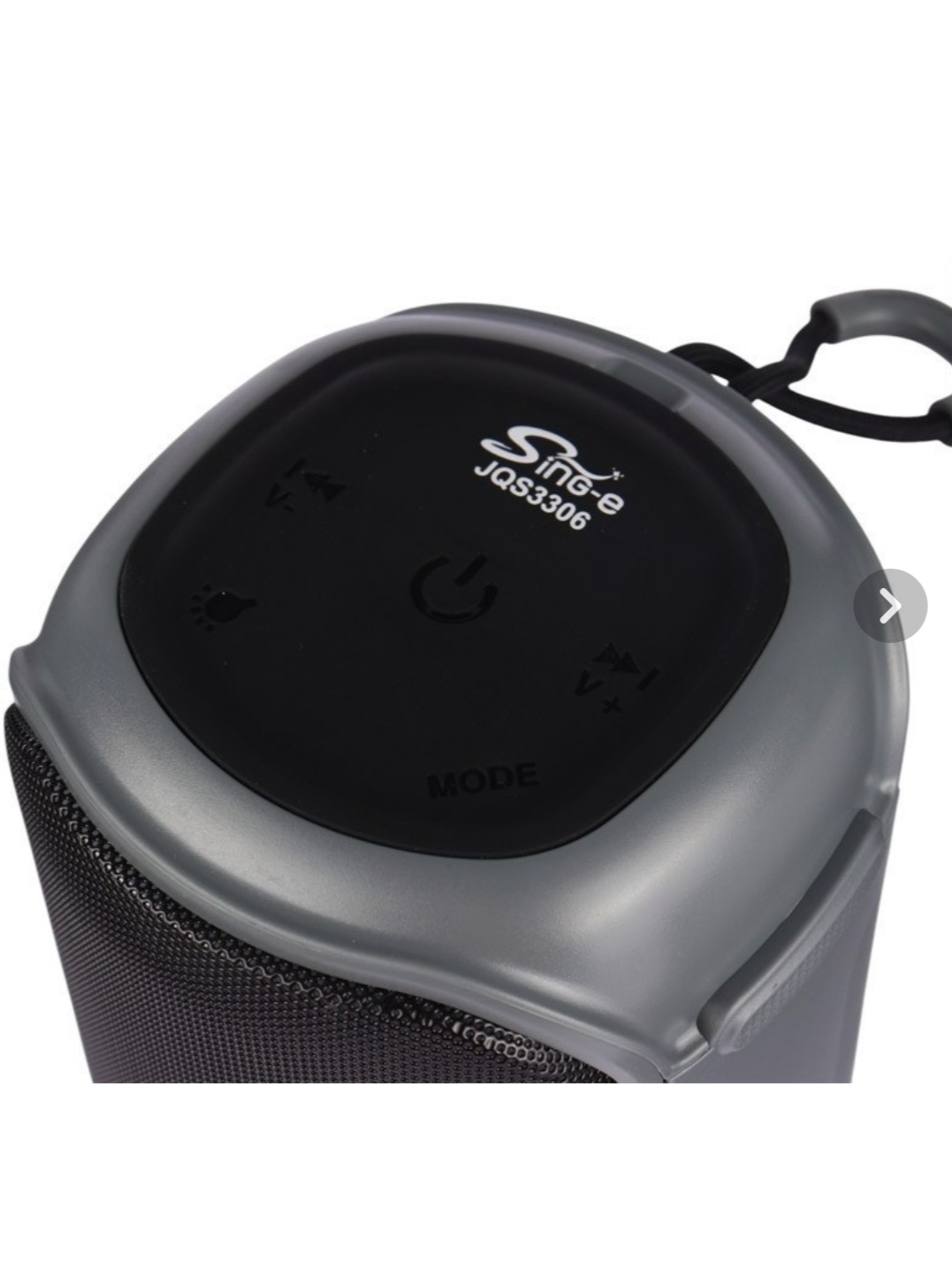 اسپیکر بلوتوثی قابل حمل Sing-e مدل JQS3306 با طراحی ایستاده و جمعوجور خود، ظاهری مدرن و جذاب دارد.