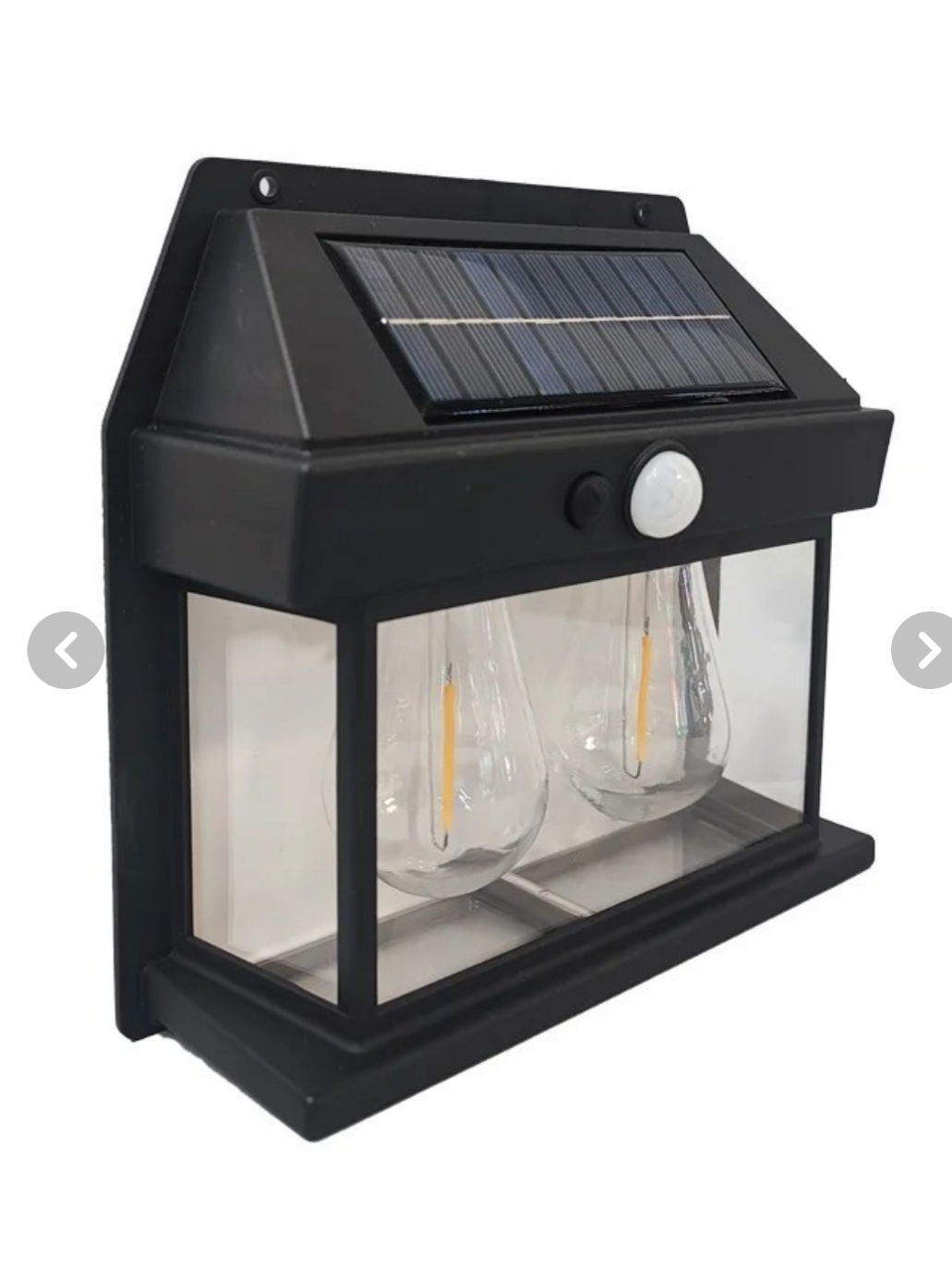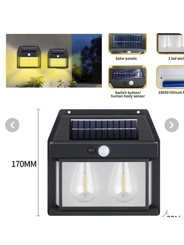 چراغ دیواری خورشیدی مدل فیلامنتی ادیسونی دارای 2 فیلامنت طرح لامپ می باشد و از طریق پنل خورشیدی که دارد می تواند به صورت خودکار شارژ کند و با استفاده از سنسور فوتوسلی که دارد به صورت خودکار در تاریکی روشن شود که البته با دکمه روی دستگاه می توان خاموش کردن دستگاه و میزان نور را مدیریت کرد.