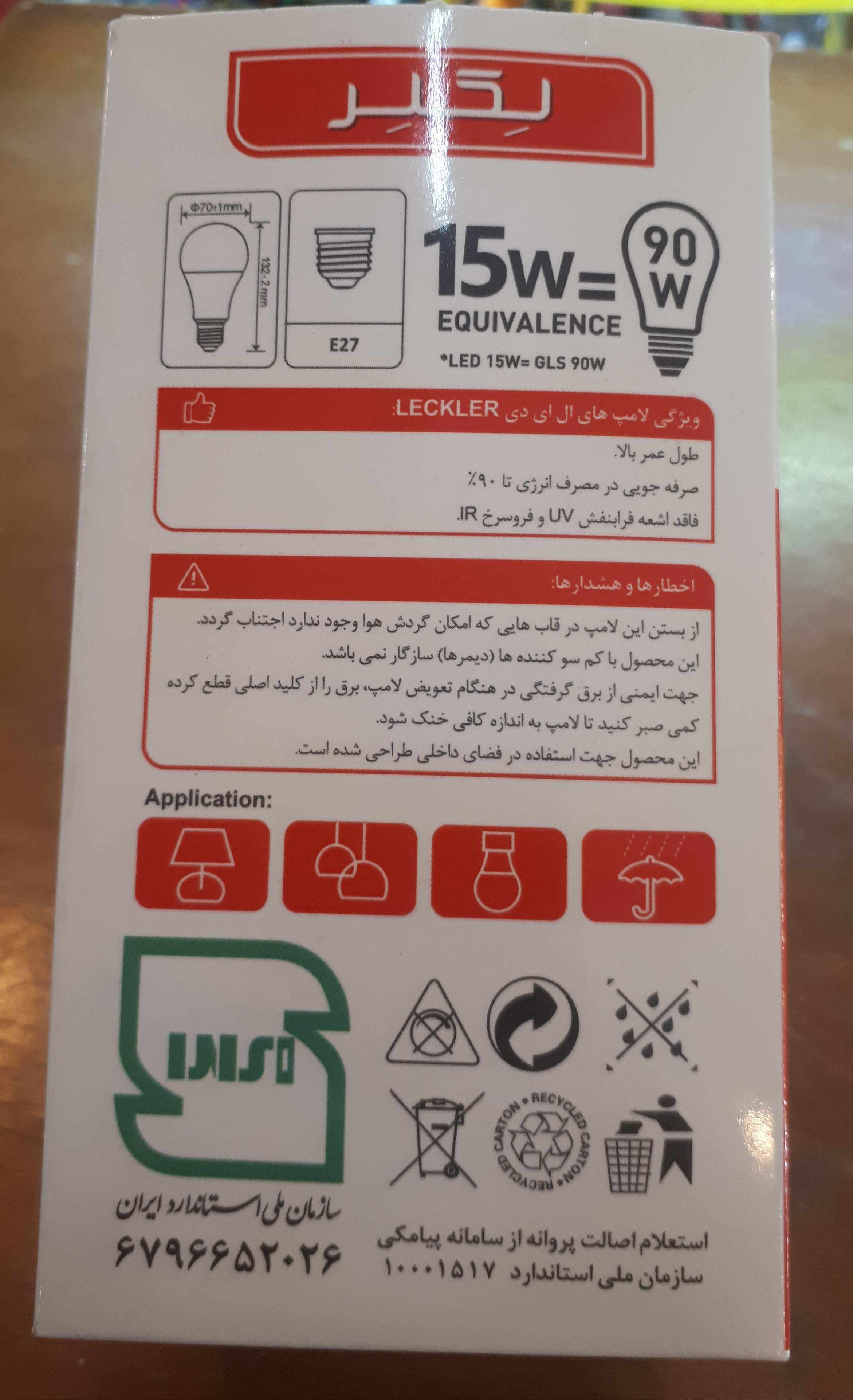 لامپ کم مصرف ال ای دی ۱۵ وات لکلر، دارای علامت استاندارد, با خرید ۳ عدد ، یک عدد لامپ ۱۸ وات اشانتیون هدیه بگیرید