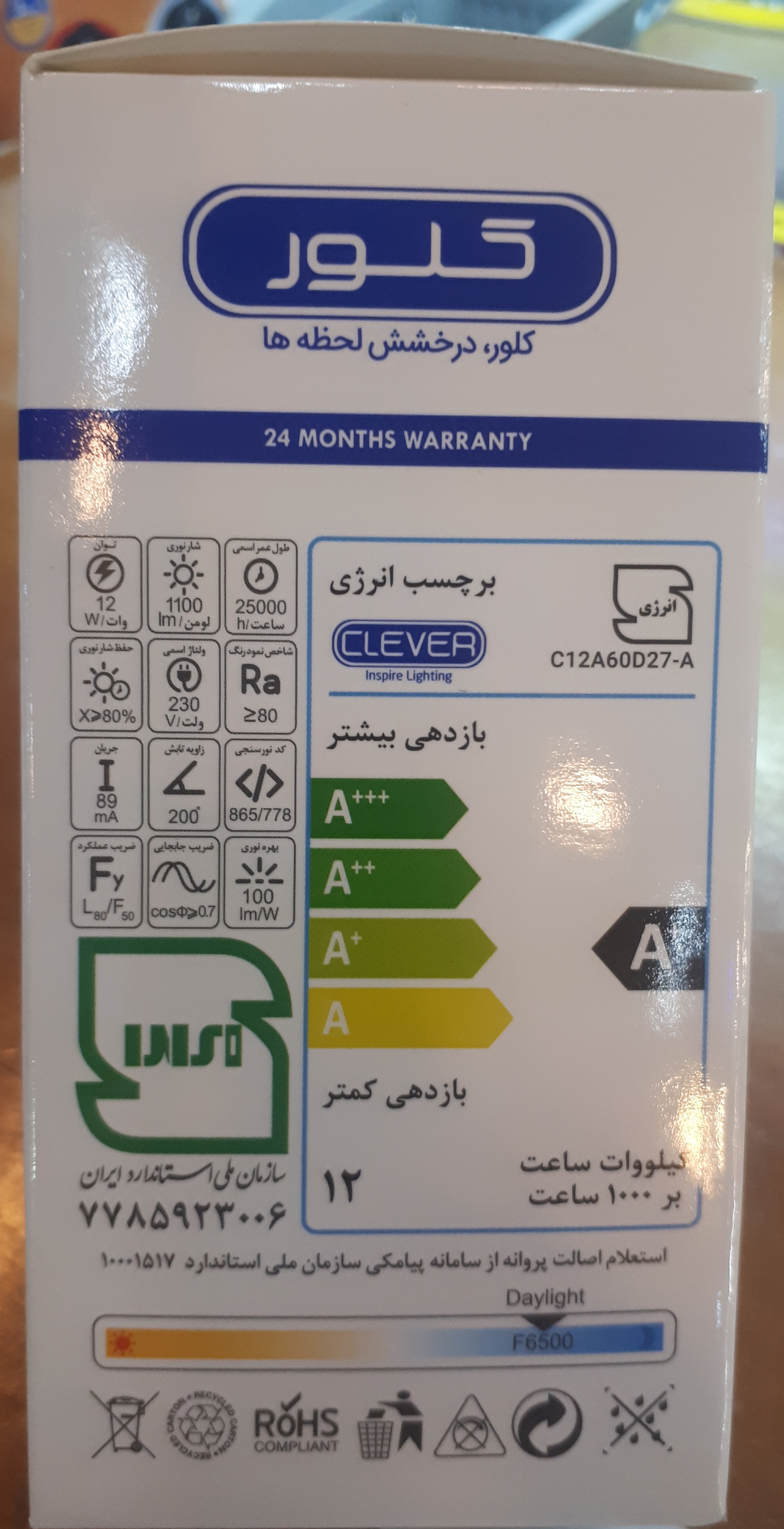 لامپ ال ای دی کلور ۱۲ وات CLEVER ، سامسونگ , 24 ماه گارانتی ، با علامت استاندارد ، با خرید ۳ عدد ، یک عدد لامپ ۱۸ وات اشانتیون هدیه بگیرید