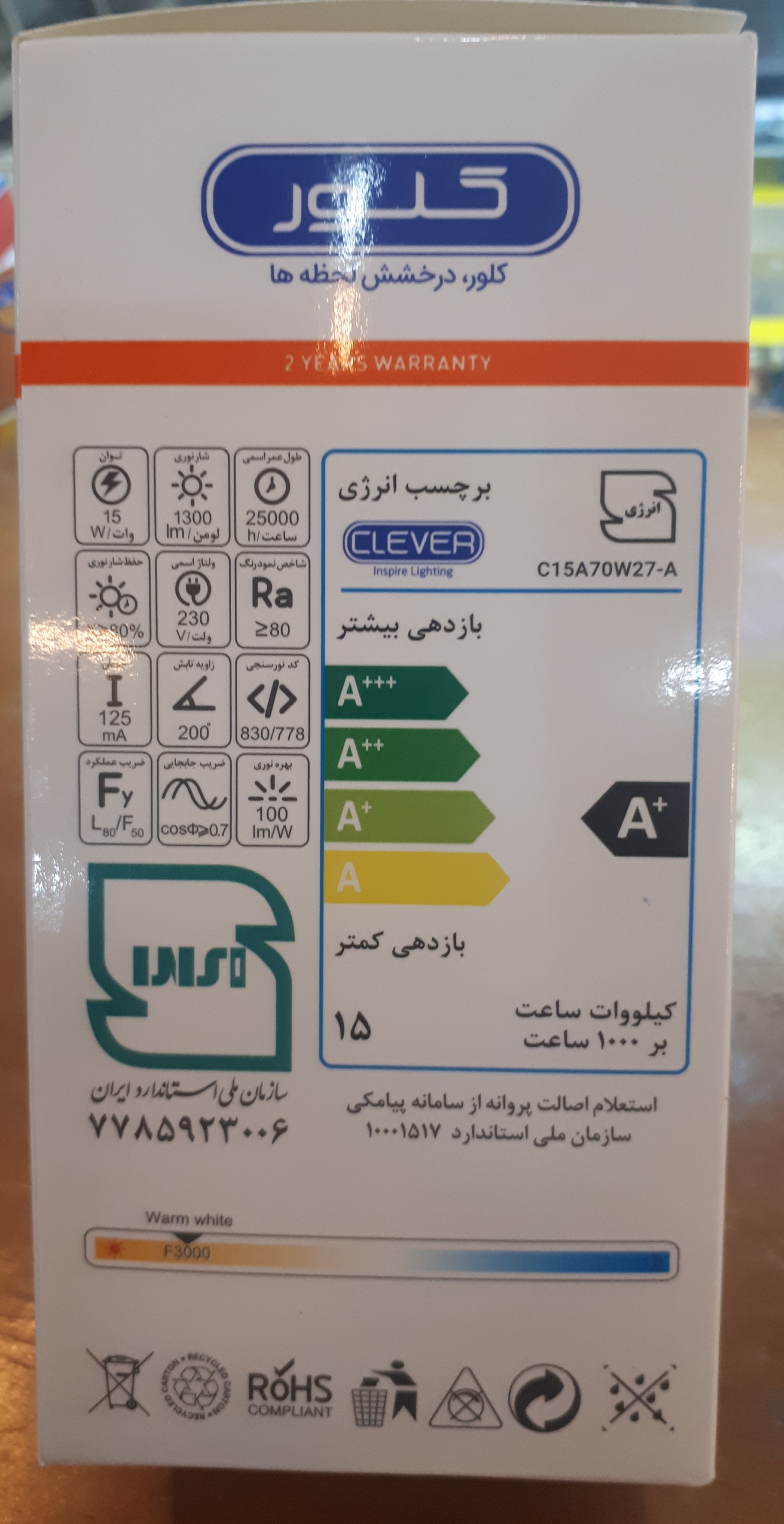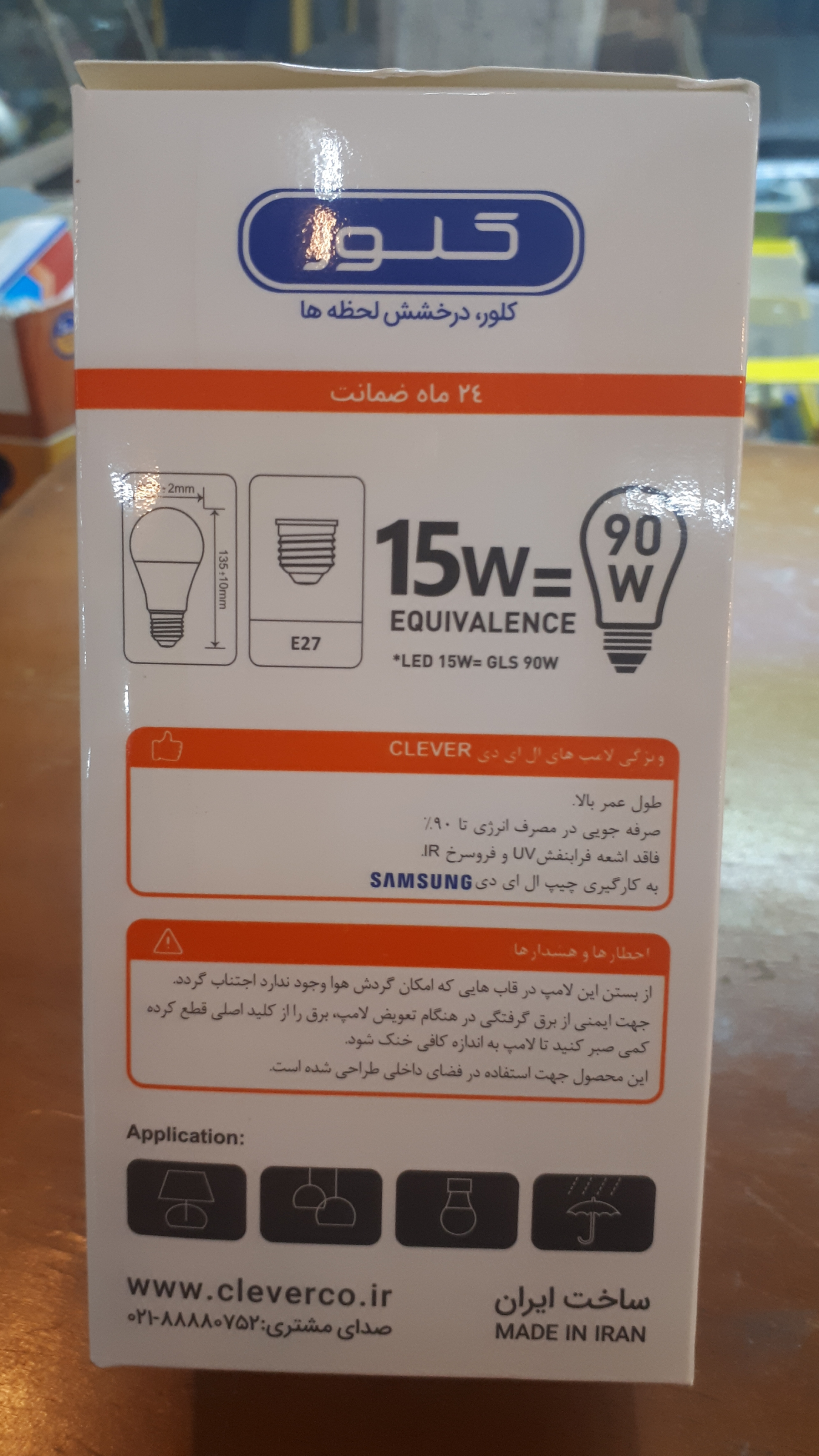 لامپ ال ای دی کلور ۱۵ وات ، ۲۴ ماه گارانتی تعویض , با علامت استاندارد ، با خرید ۳ عدد ، یک لامپ ۱۸ وات اشانتیون هدیه بگیرید